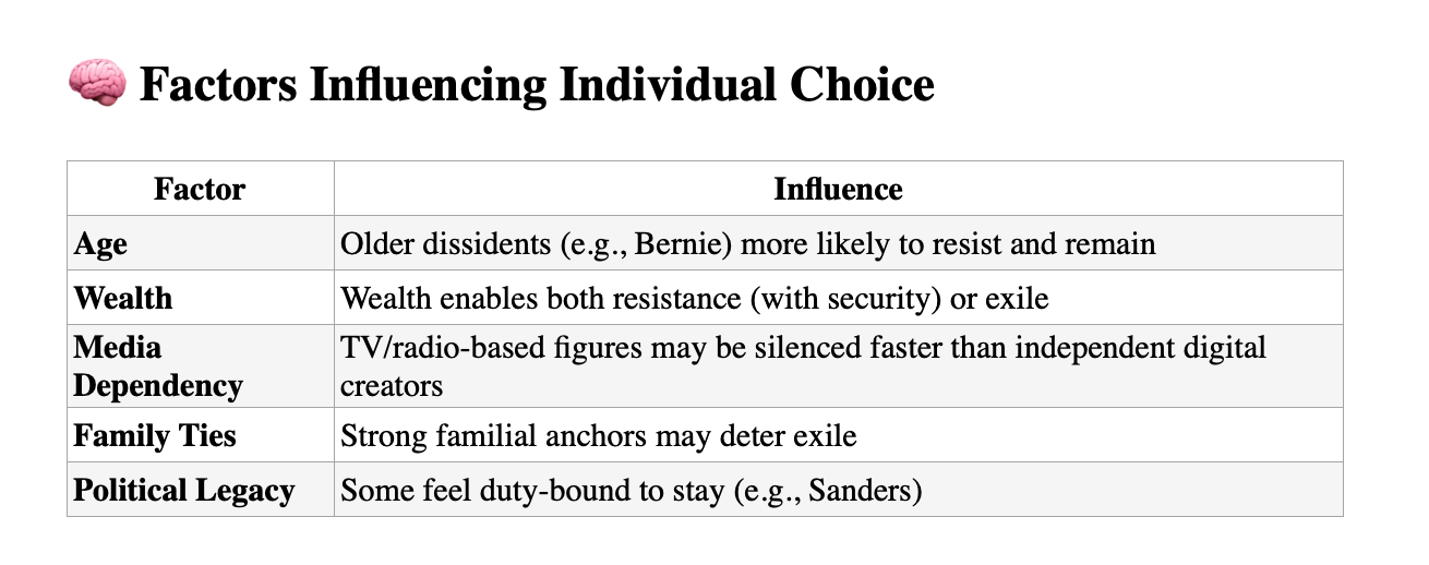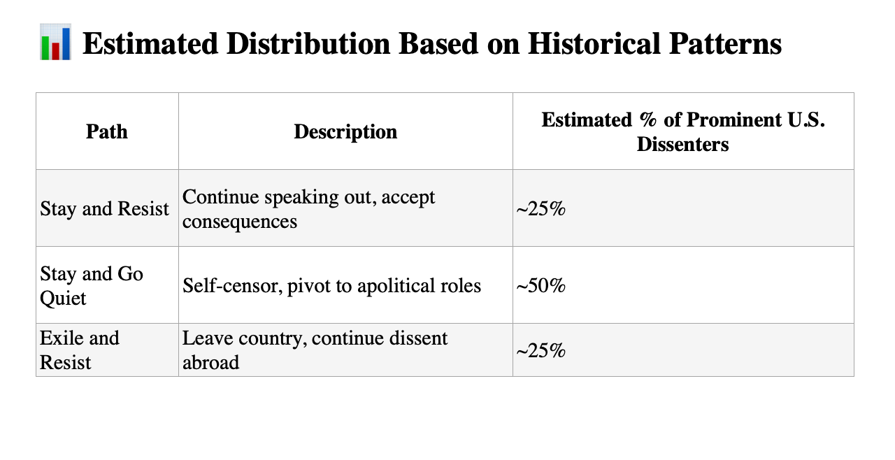 The U.S. may experience a brain drain of dissenters, similar to 1930s Germany or post-2016 Turkey. But many who leave will lose platforms—because authoritarian regimes not only silence critics, they erase them from the public imagination.